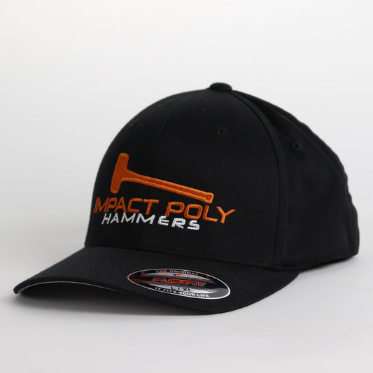 Impact Poly Hammers Ltd. Hats. Including pro-fit curved visor and snap-back flat visor options.